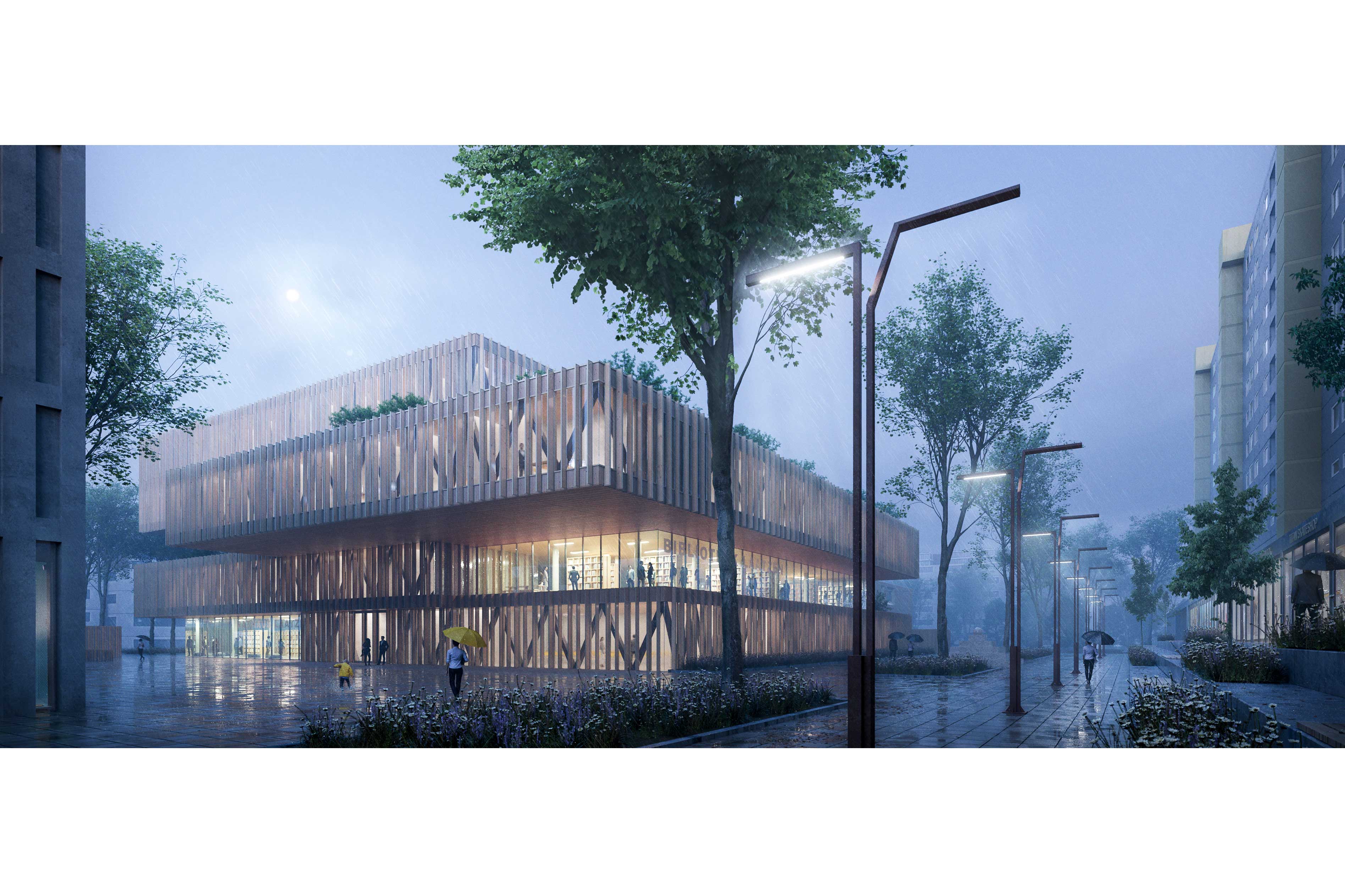 Nicht nur ein reines Verwaltungsgebäude sondern einen Ort für alle Bürger der Stadt Laatzen zu schaffen ist das Ziel des Entwurfs. Durch aufteilen, versetzen und zueinander verschieben der reinen Verwaltungsebenen entstehen in der Kubatur des Neubaus Räume für öffentliche, gemeinschaftliche Nutzungen in aller Vielfalt. Das Rathaus öffnet sich zur Stadt hin, verschmilzt mit Bibliothek und Bürgerzentrum und schafft so eine besondere Typologie an einem besonderen Ort. Durch die versetzt angeordneten Nutzungen wird die zentrale Halle ein lebendiger, kommunikativer Ort. Die eigentlich strenge kubische Form und auch das Material der Fassaden führen den Gedanken des Stadthauses fort und interpretieren ihn neu.
